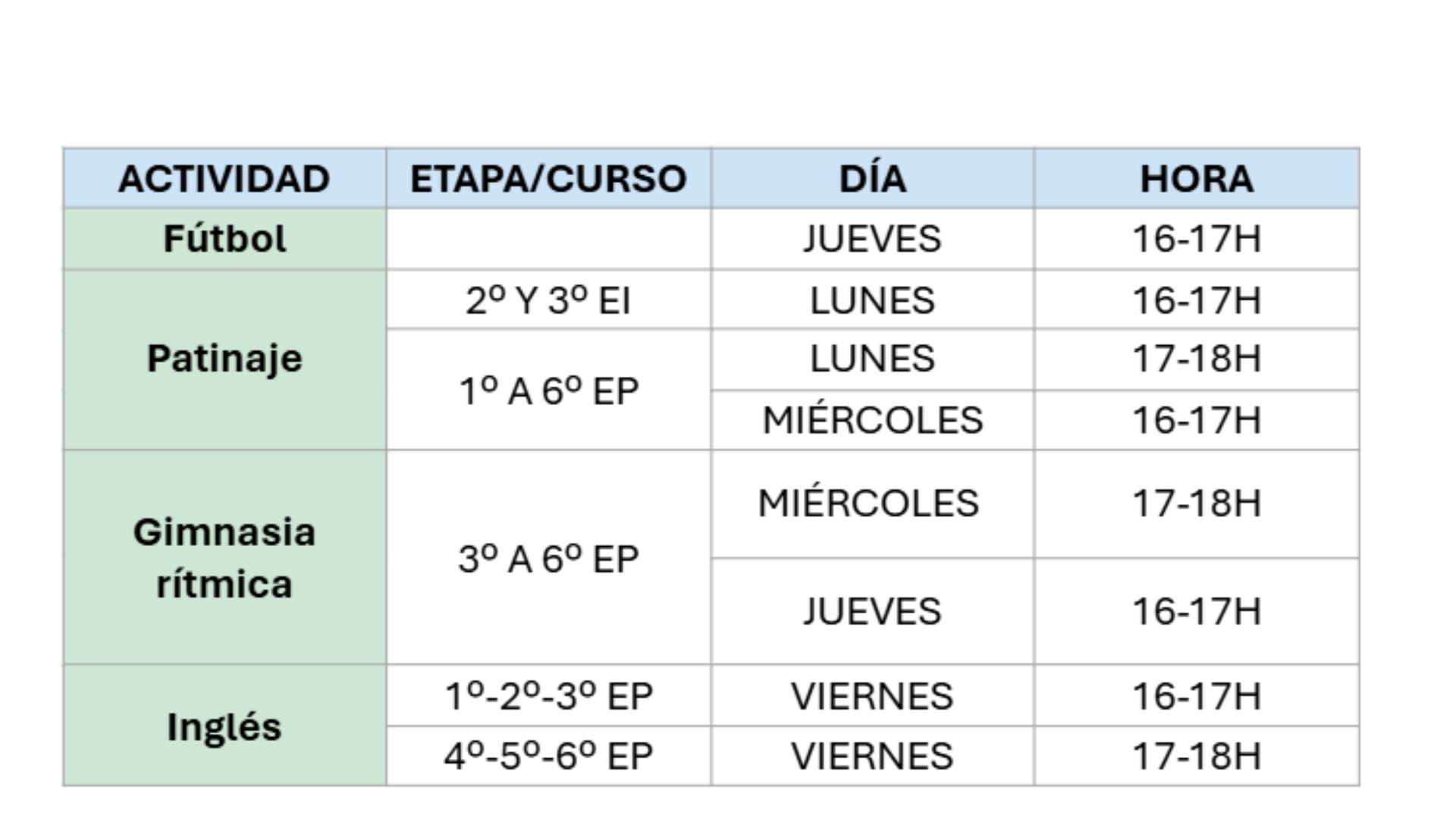 En colaboración con el AMPA, se ofertan las siguientes actividades extraescolares para curso 25-26: